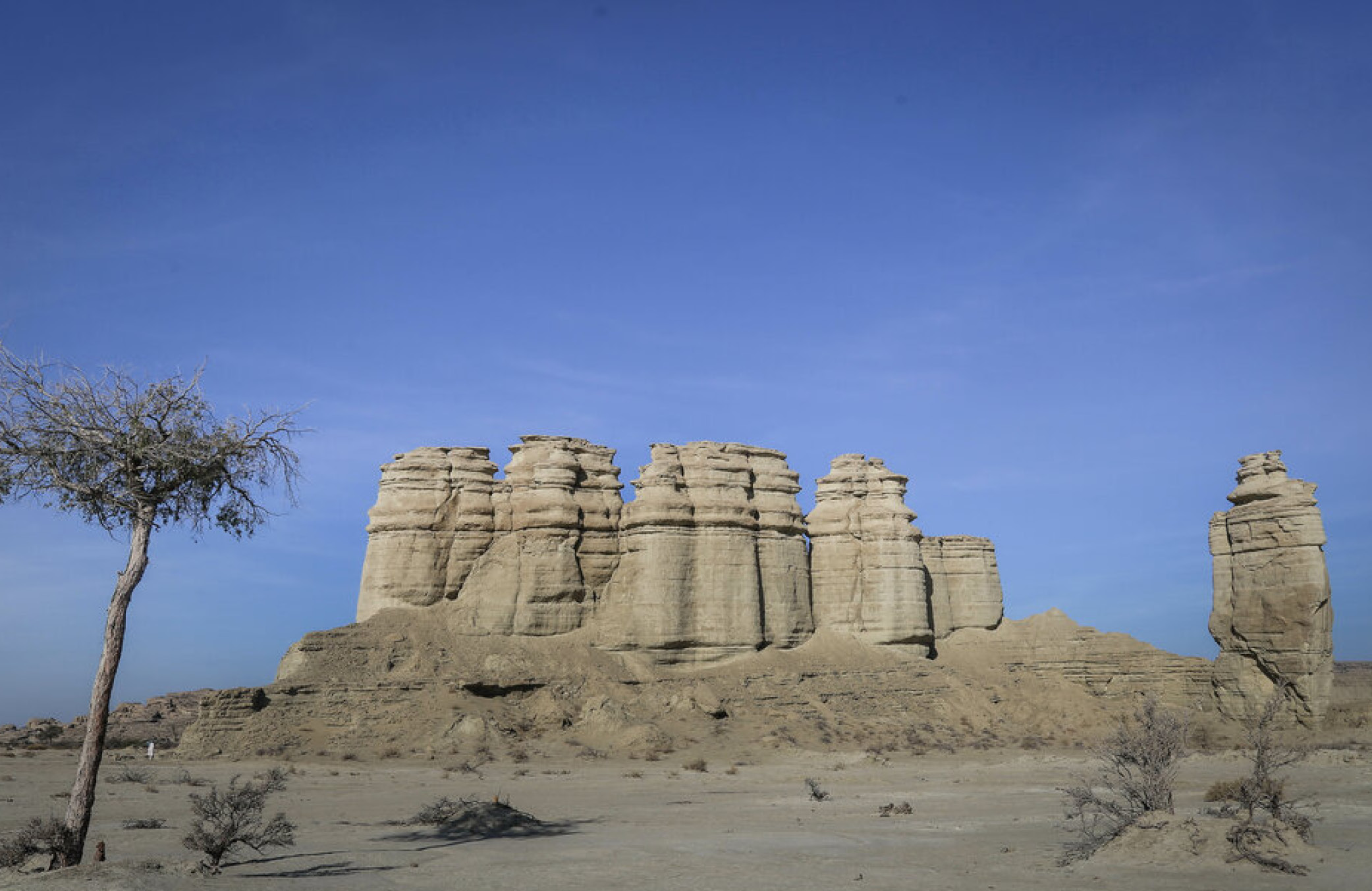 پیکره این کوهها از جنس رس، مارن و ماسهسنگهای نرم است و در گذر میلیونها سال، بر اثر فرسایش باد، باران و جریانهای فصلی شکل گرفتهاند. نبود پوشش گیاهی و رطوبت اندک باعث شده تا خطوط تیز و لایههای متراکم رسوبی آنها آشکار و دیدنی بماند. در زمان طلوع و غروب آفتاب، بازتاب نور خورشید بر سطوح نقرهای و خاکستریرنگ کوهها، منظرهای خیالانگیز پدید میآورد؛ گویی زمین و آسمان در مرز رنگها به هم رسیدهاند.